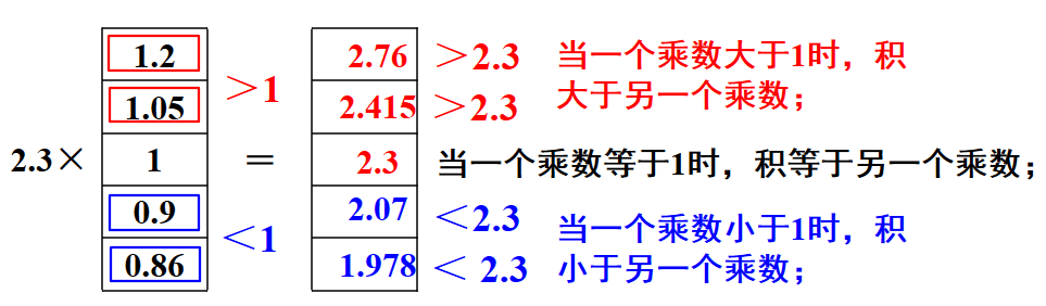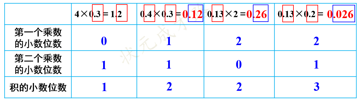 计算小数乘法时要注意:无论是小数乘小数,还是小数乘整数,都先按照整数乘法算出积,再根据乘数的小数位数确定积中小数点的位置。