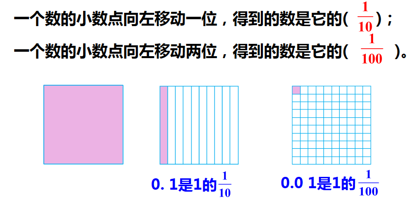 (1)小数点向左移动一位,小数就缩小为原数的